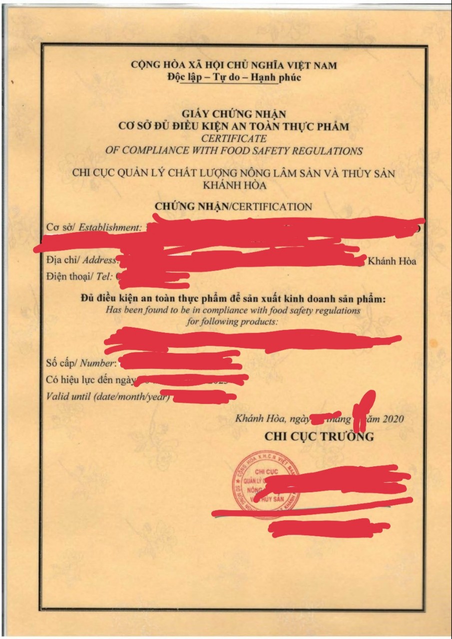 C. GIẤY CHỨNG NHẬN VỆ SINH AN TOÀN THỰC PHẨM TẠI KHÁNH HÒA